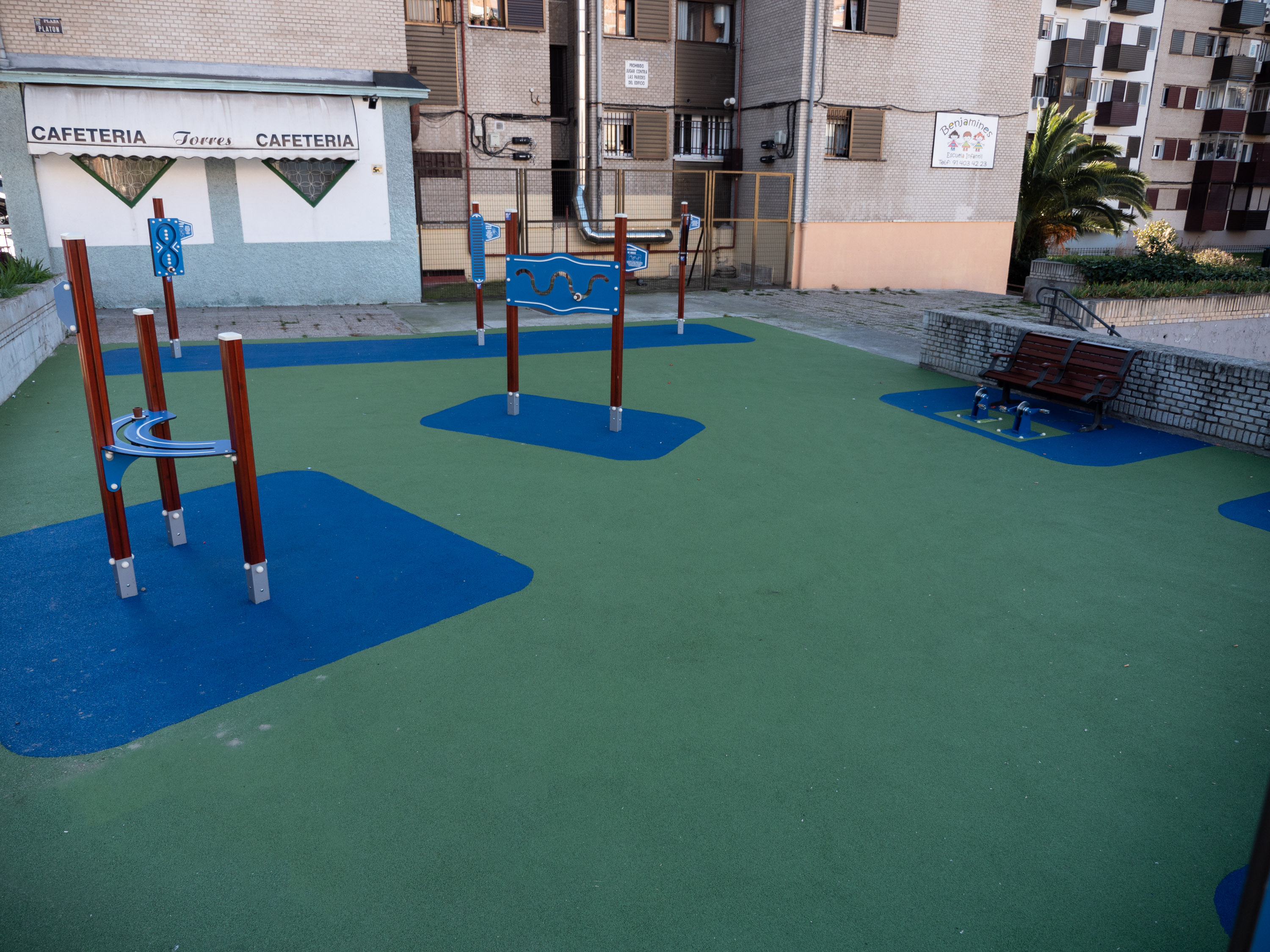 55 ml tanca metàl·lica, 1 gronxador, 1 moto de molles i 1 aventura mini per a l'àrea infantil, 4 bancs, 2 jocs de pedals, 1 escala de braços, 1 escala de dits, 1 recorregut en vuit i 1 d'ones, 48 ml de palissada, 5 bancs, 1 balancí, 1 tanca de salt i 1 roda canina.