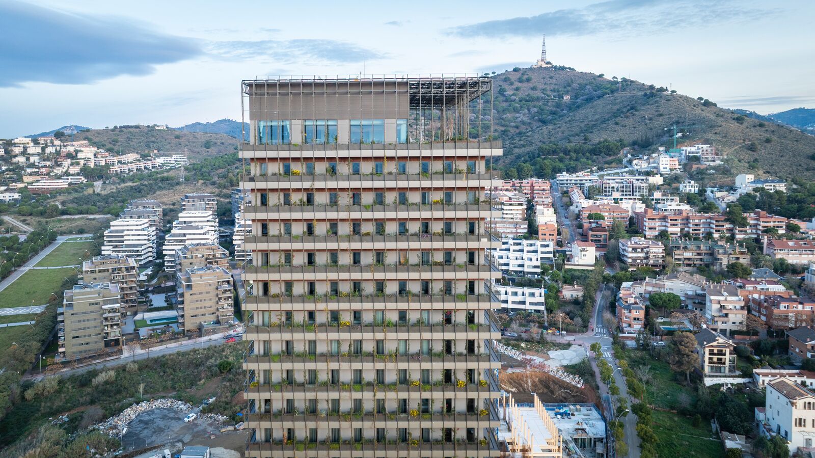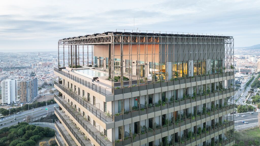 Ubicado en la entrada de la Avenida Diagonal de Barcelona, el edificio incorpora la naturaleza en sus fachadas norte y sur con jardines verticales a lo largo de 21 plantas, así como palas por las que crece vegetación. Además, las fachadas este y oeste favorecen la creación de espacios interiores diáfanos mediante la entrada de luz natural por balcones corridos de barandilla metálica.