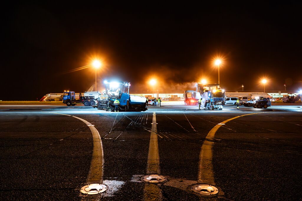 Los trabajos cumplen con los parámetros establecidos por Aena en cuanto a seguridad aérea y se ejecutan en un tiempo récord de dos semanas, en jornadas continuas 24/7, para minimizar afectaciones a la operatividad aeroportuaria.