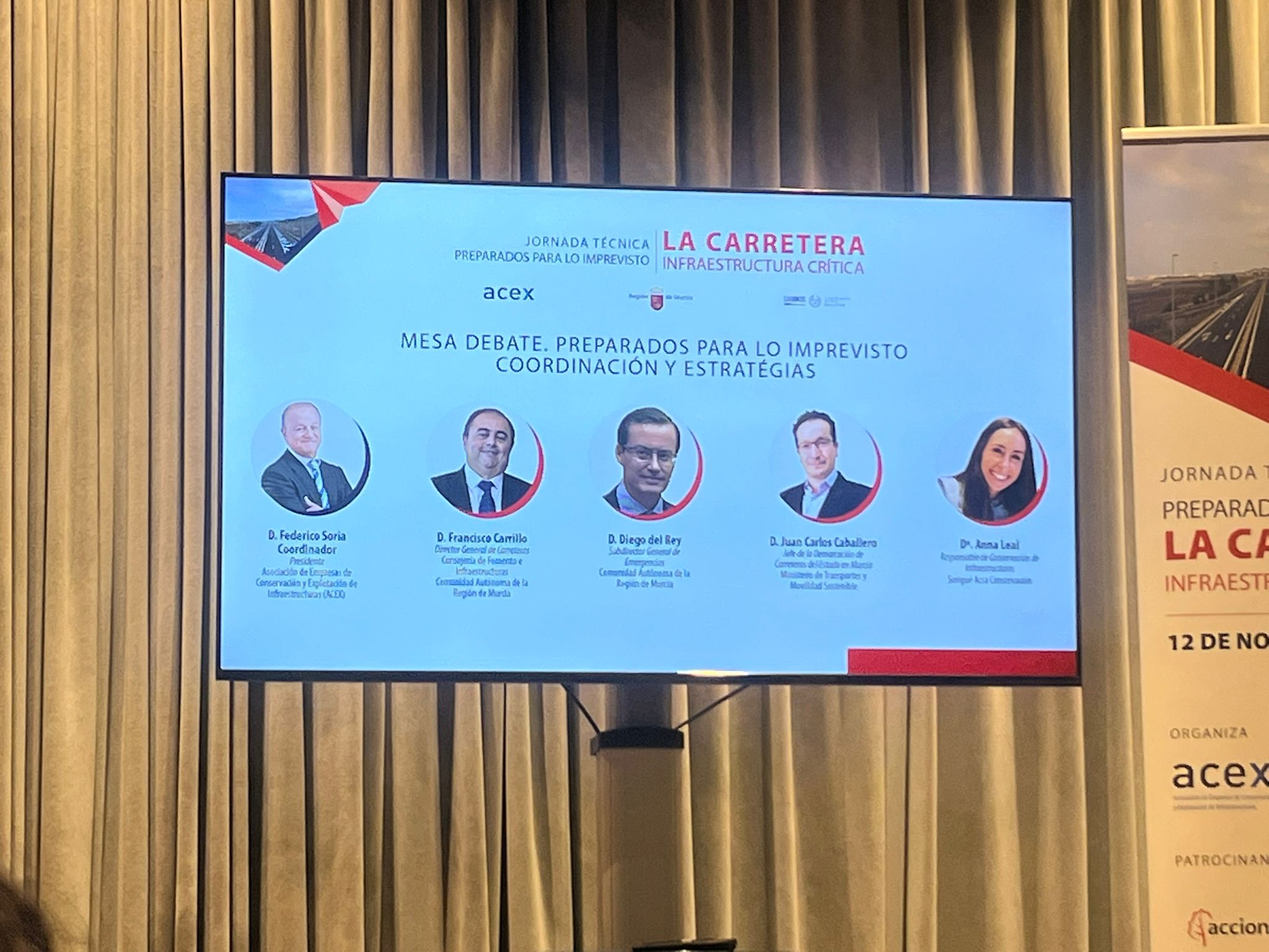 La jornada técnica ‘Preparados para lo imprevisto. La carretera, infraestructura crítica’, tuvo lugar el 12 de noviembre en la Consejería de fomento e Infraestructuras de Murcia y contó con el apoyo del gobierno de la Región de Murcia y el Colegio de Ingenieros de Caminos, Canales y Puertos de Murcia.