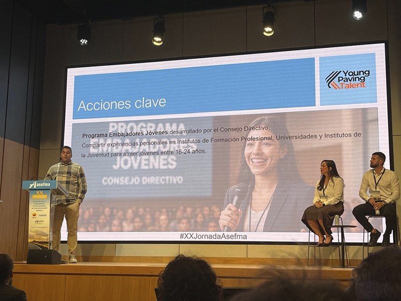 Durante la jornada nacional de Asefma, Sorigué también participó en la mesa Young Paving Talent, iniciativa de la entidad para incorporar talento joven al mundo del asfalto. En este espacio, el operario de asfaltos Catalunya, Israel Martín, explicó su experiencia en Sorigué y mostró su compromiso con la promoción del sector como alternativa formativa y laboral.